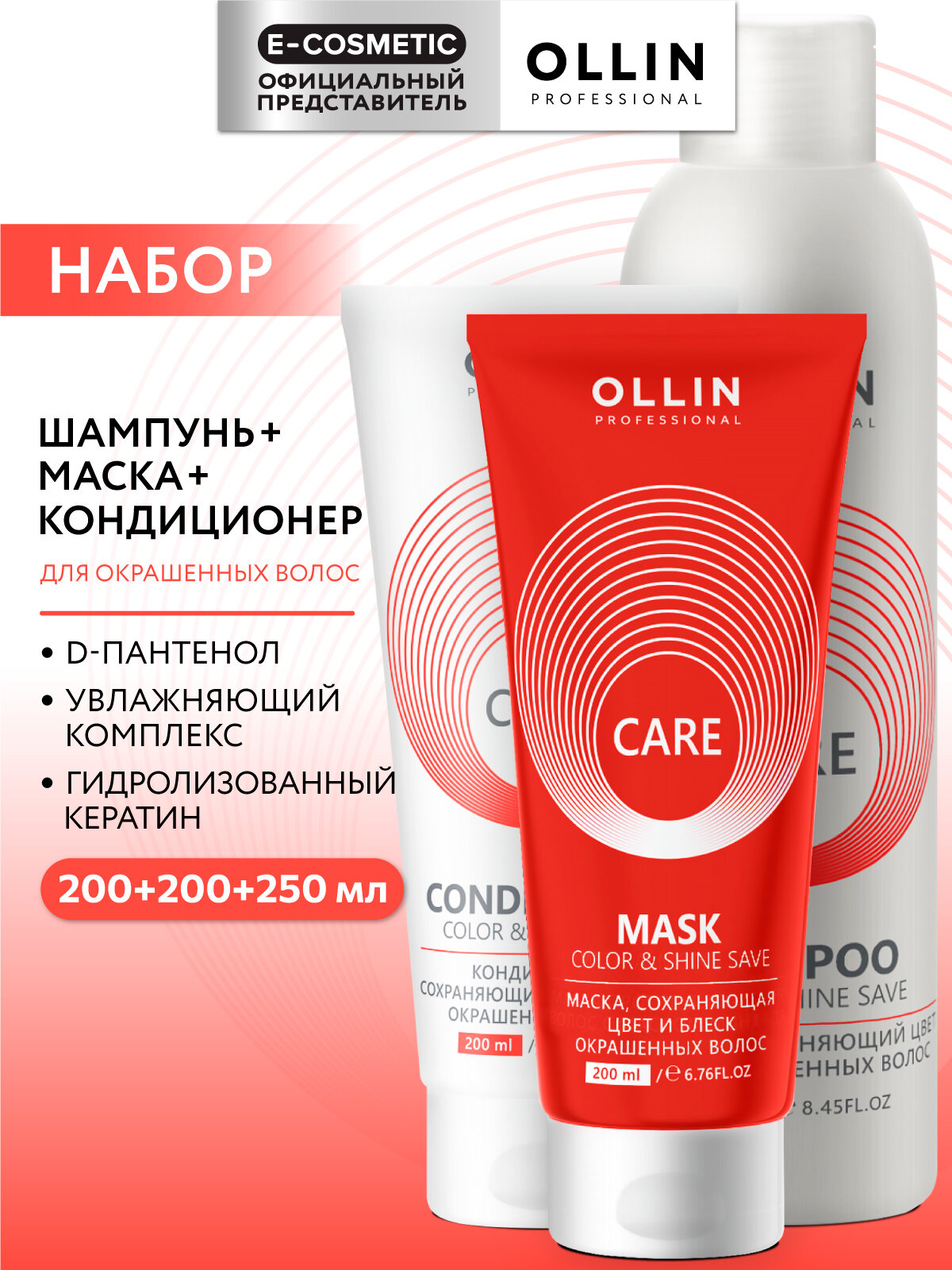 Набор для окрашенных волос OLLIN PROFESSIONAL Care защита цвета: шампунь, кондиционер и маска, 250+2*200 мл: сравнение цен, характеристики, фото, актуальное наличие и цены.