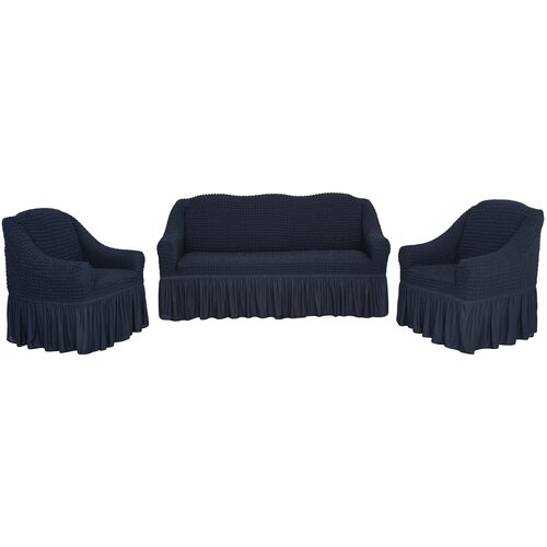 Чехлы на диван и два кресла с оборкой универсальные однотонные, цвет Антрацит: сравнение цен, характеристики, фото, актуальное наличие и цены.