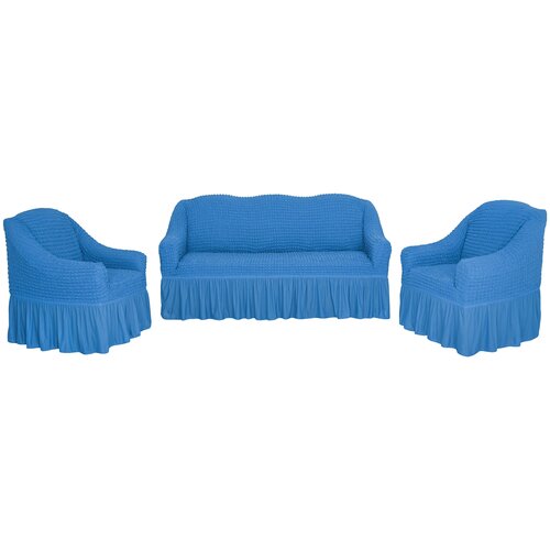 Купить Комплект чехлов на диван и 2 кресла с оборкой, цвет Голубой с доставкой по всей России. Комплект чехлов на диван и 2 кресла с оборкой, цвет Голубой: сравнение цен, характеристики, фото, актуальное наличие и цены.