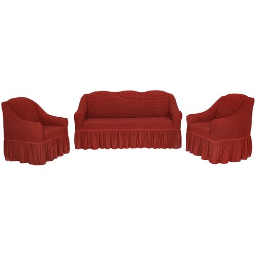 Купить Набор чехлов на трехместный диван и два кресла с оборкой, цвет Терракот с доставкой по всей России. Набор чехлов на трехместный диван и два кресла с оборкой, цвет Терракот: сравнение цен, характеристики, фото, актуальное наличие и цены.
