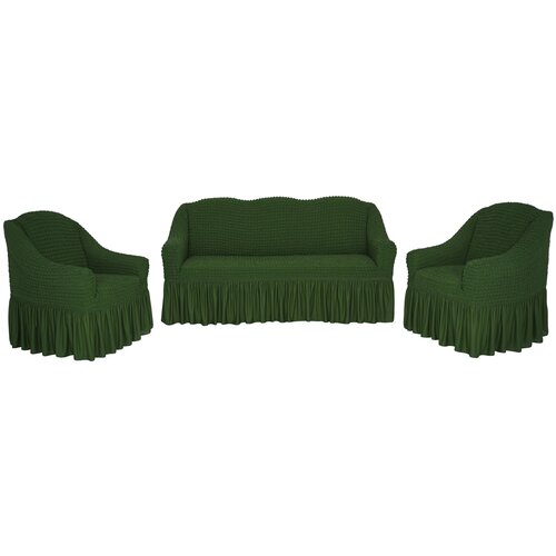 Купить Комплект чехлов на трехместный диван и два кресла с оборкой, цвет Зеленый с доставкой по всей России. Комплект чехлов на трехместный диван и два кресла с оборкой, цвет Зеленый: сравнение цен, характеристики, фото, актуальное наличие и цены.