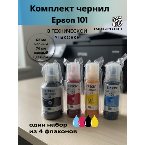 Чернила Epson 101 поставляются в герметичной упаковке, которая предотвращает высыхание и сохраняет свойства состава. Благодаря сбалансированной формуле достигается высокая насыщенность и естественность изображений — идеальный выбор для печати фотографий, иллюстраций, презентаций и рекламных материалов.