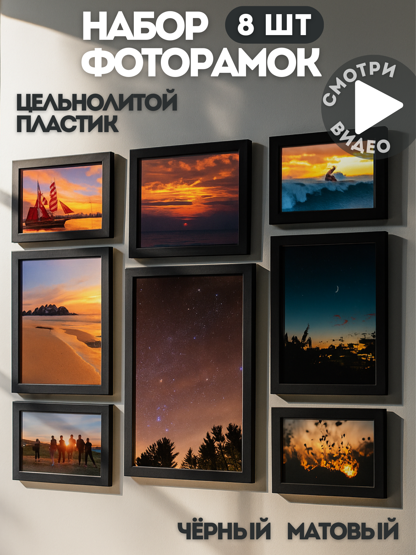 Купить Набор черных рамок для фото, комплект фоторамок на стену из 8 штук, коллаж 21*30 см, 15*21 см, 10*15 см с доставкой по всей России.