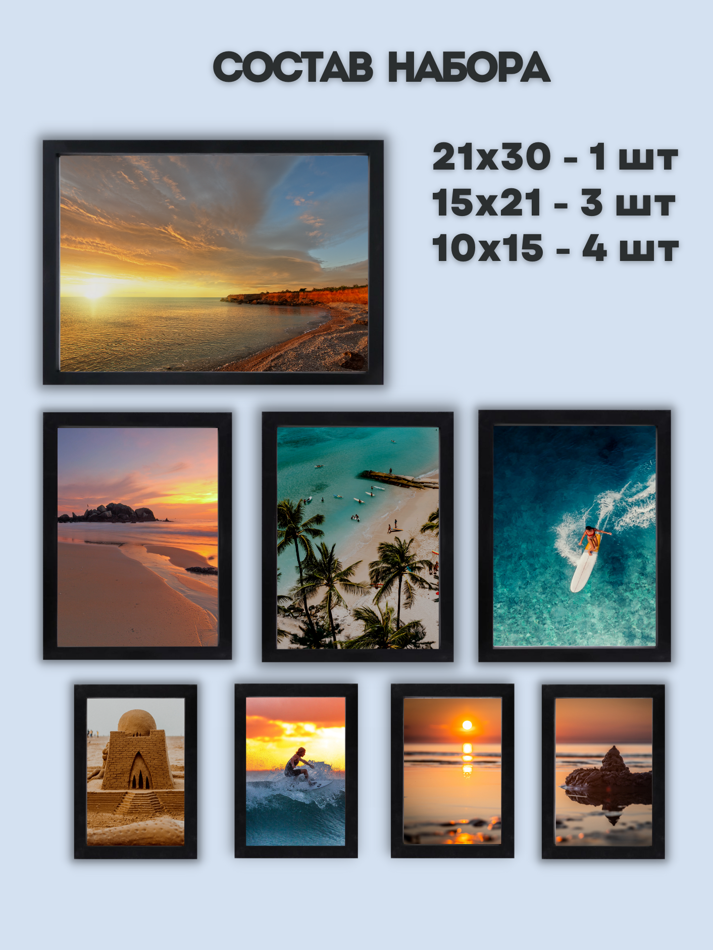 Набор черных рамок для фото, комплект фоторамок на стену из 8 штук, коллаж 21*30 см, 15*21 см, 10*15 см: сравнение цен, характеристики, фото, актуальное наличие и цены.