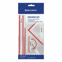 Набор чертежный большой Brauberg Crystal (треугольники 2шт, линейка 30см, транспортир, выделенная шкала) (210297), 24 уп.: сравнение цен, характеристики, фото, актуальное наличие и цены.