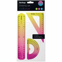 Набор чертежный средний Berlingo Radiance (треугольник 14см, линейка 20см, транспортир) гибкий, желтый/розовый градиент, 24 уп. (RS_10320): сравнение цен, характеристики, фото, актуальное наличие и цены.