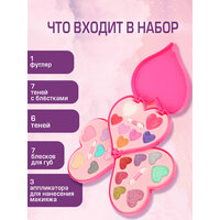 | Подробная комплектация | тени для век; блеск для губ; аппликатор для нанесения макияжа; футляр |
