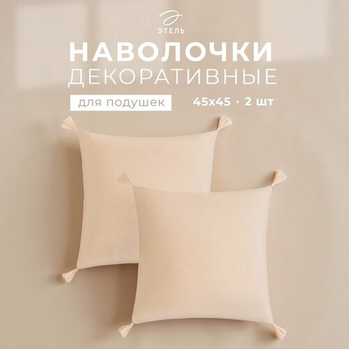 Купить Набор декоративных наволочек Этель с кисточками, цвет молочный, 45х45 см — 2 шт, полиэстер, велюр с доставкой по всей России. Набор декоративных наволочек Этель с кисточками, цвет молочный, 45х45 см — 2 шт, полиэстер, велюр: сравнение цен, характеристики, фото, актуальное наличие и цены.