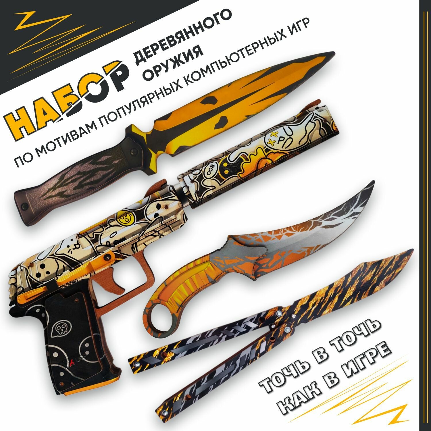 Набор деревянного оружия «Пистолет USP c глушителем», деревянные ножи «Фанг, cnbu, Бабочка», 4 шт: сравнение цен, характеристики, фото, актуальное наличие и цены.
