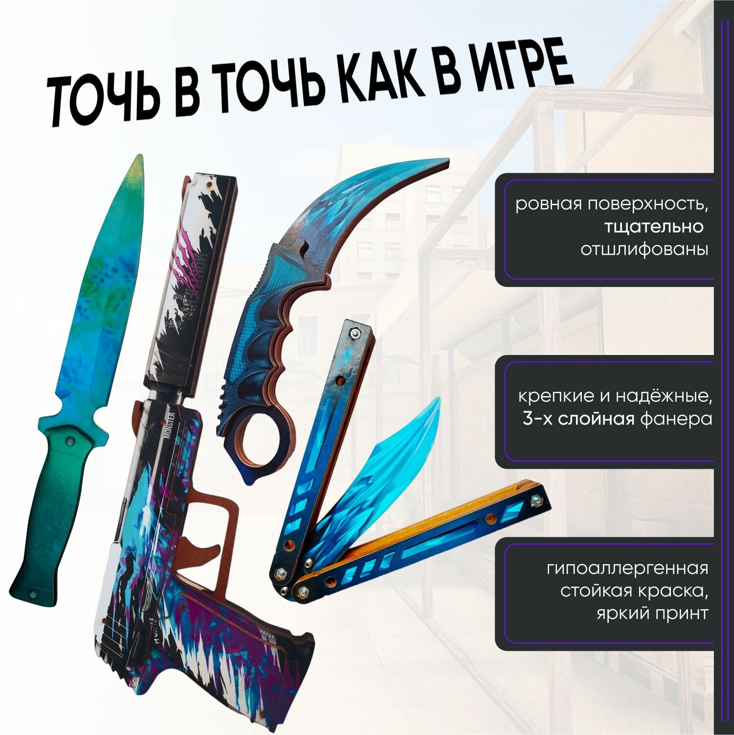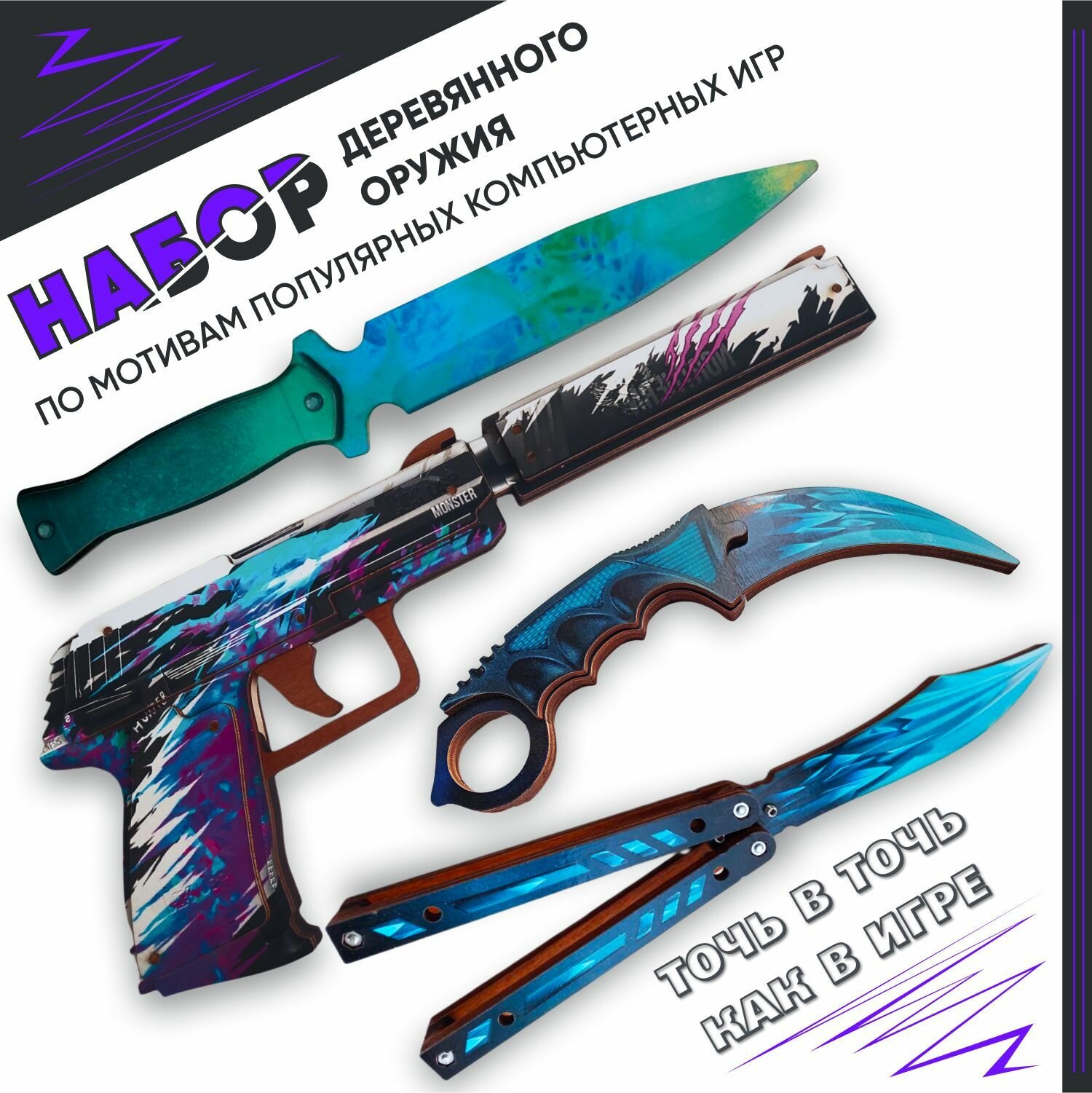 Набор деревянного оружия «Пистолет USP c глушителем», деревянные ножи «Керамбит, cnbu, Бабочка», 4 шт: сравнение цен, характеристики, фото, актуальное наличие и цены.