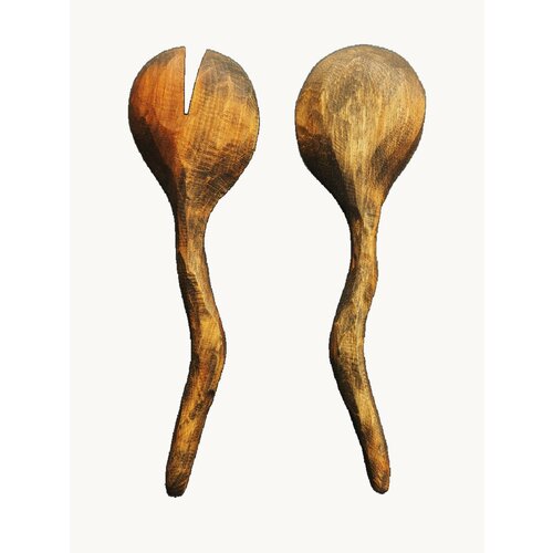 С помощью этой деревянной ложки и вилки вы сможете легко и красиво подать любимые салаты из свежей зелени. Приборы прекрасно сочетается с различными стилями интерьера, будь то деревенский, скандинавский стиль, прованс или лофт.