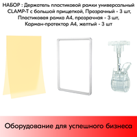 Купить Набор Держатели CLAMP-T Прозрачные+Пластиковые рамки с закругленными углами А4, Прозрачные+Карманы-протекторы A4 антиблик PP, Желтые по 3 шт с доставкой по всей России.