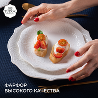 Набор десертных тарелок 21 см от Tudor England - это стильный выбор для сервировки вашего стола. Коллекция Royal Whitehall изящная, привлекательная, ажурная, белоснежная и очень практичная. Все тарелки из этой коллекции можно мыть в посудомоечной машине и использовать в микроволновых печах. Фарфор Tudor England обладает такими характеристиками как: укрепленный край от сколов, особо прочная глазурь, минимальная пористость, практичность и долговечность. В наборе 6 тарелок 21 см