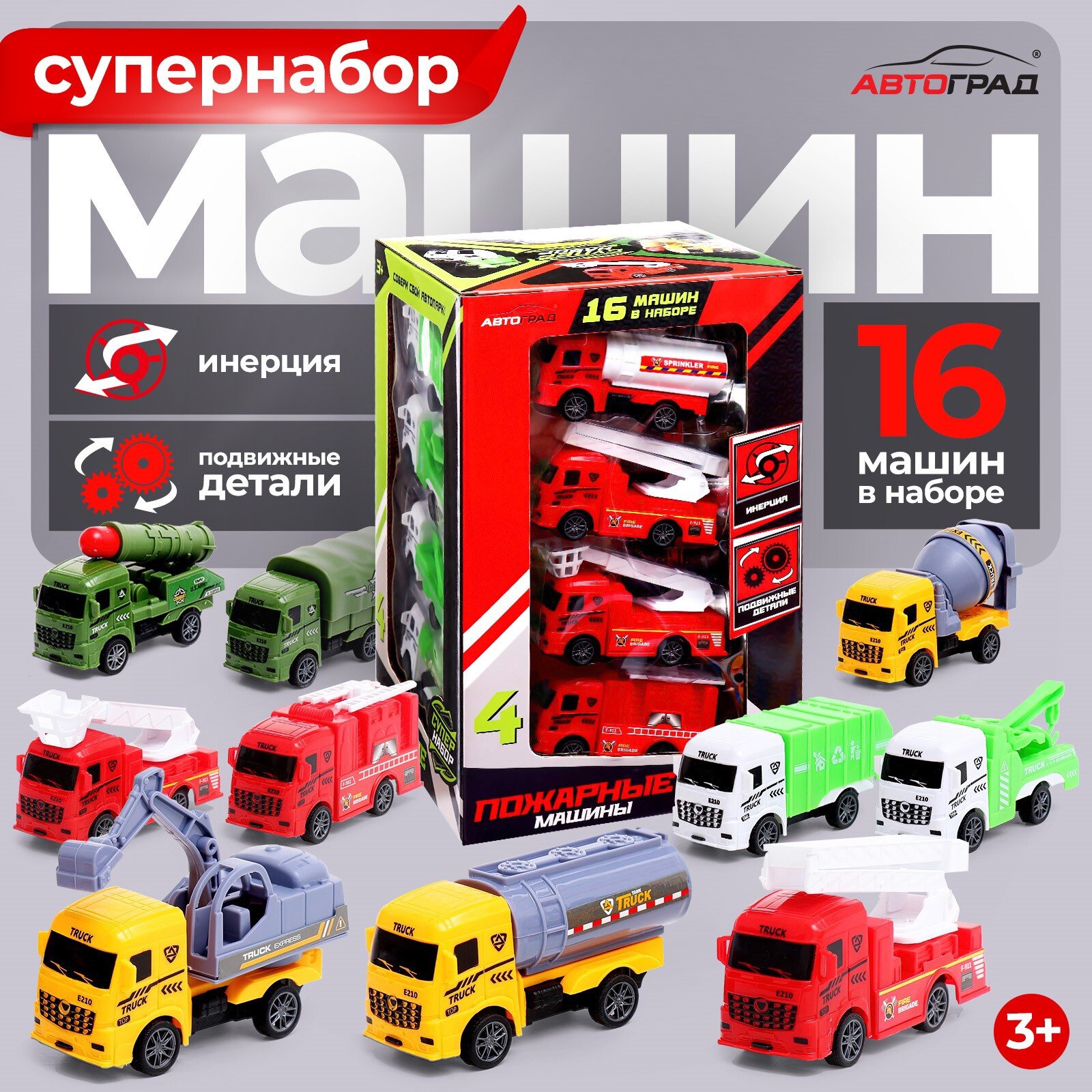 Купить Набор детских инерционных машинок «Супер», 16 шт, 4 вида, подвижные детали, пластик с доставкой по всей России.