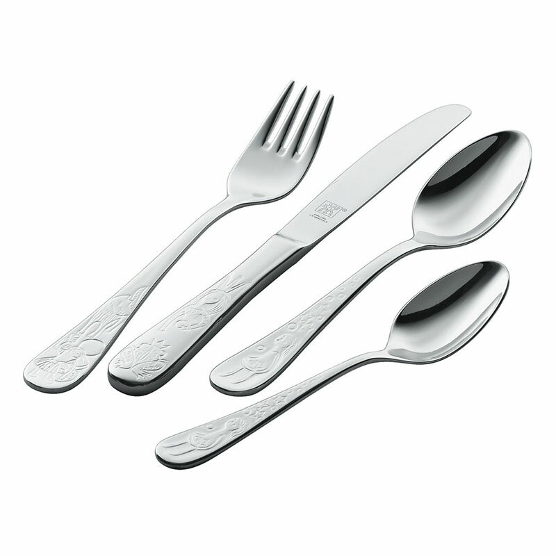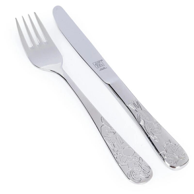 Набор выполнен из высококачественной нержавеющей стали. Темой для оформления данного набора стали сказки братьев Гримм. Набор будет полезен при обучении ребенка использованию вилки и ножа. Такой набор непременно порадует Вашего малыша!