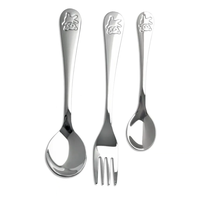 Набор детских столовых приборов VELERCART KIDS состоит из трех предметов: столовой ложки, вилки и чайной ложки.