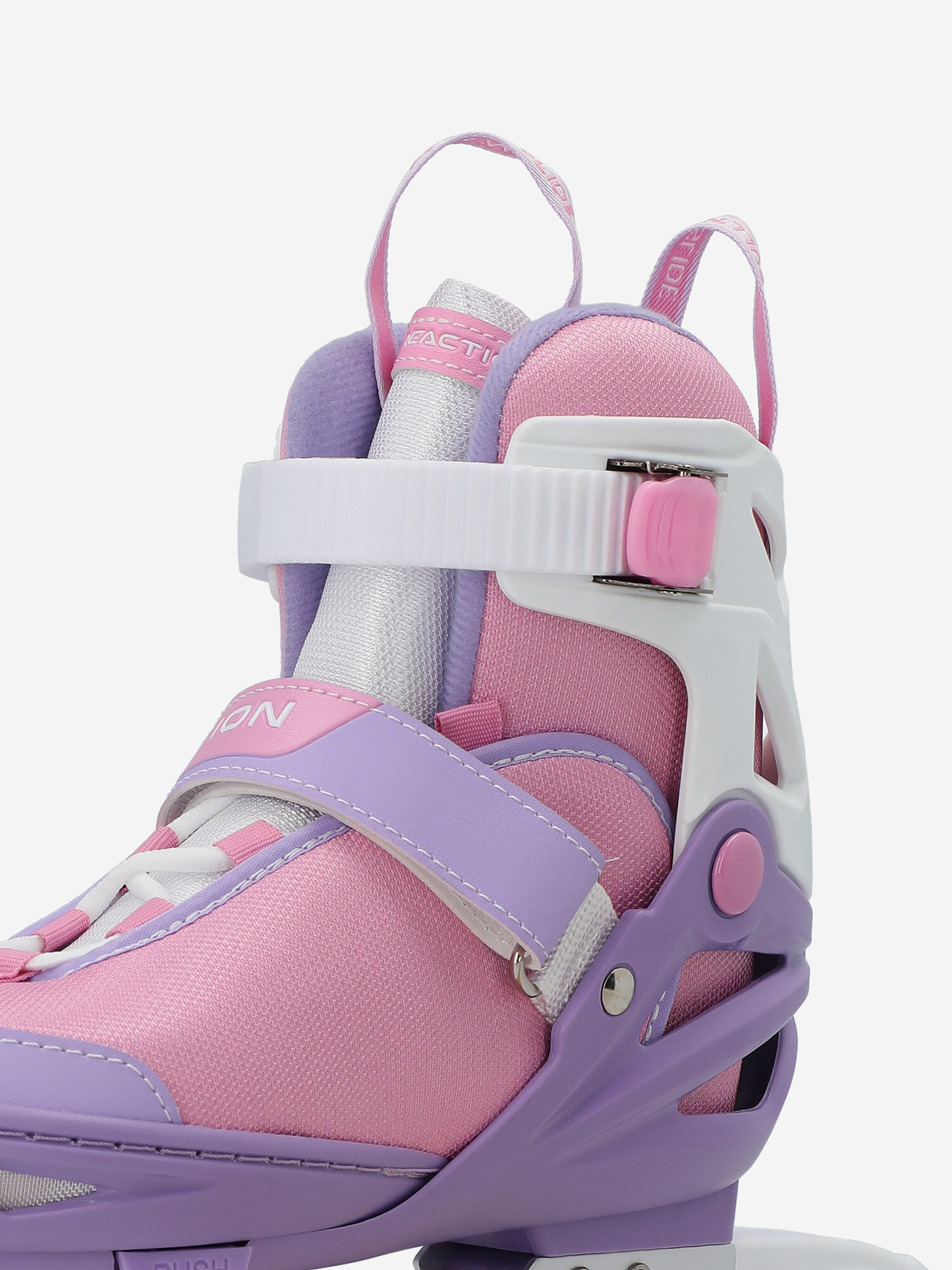 Представляем идеальный стартовый набор для юных роллеров: раздвижные роликовые коньки Reaction Rainbow и комплект защиты. Модель, оснащенная надежной алюминиевой рамой, способствует стабильности и уверенности на каждом повороте, а раздвижная конструкция на 6 размеров позволит ребенку пользоваться роликами несколько лет. Дополнительный комфорт гарантирован благодаря мягкому анатомическому ботинку с мягкими подушечками в области щиколотки. Система фиксации включает в себя ремень с липучкой, прочные шнурки и удобную клипсу с простым механизмом отстегивания. Подшипники ABEC 5 способствуют плавному и быстрому скольжению. Полиуретановые колеса с оптимальной жесткостью 82А идеально подойдут для активного катания. Все это, плюс полный комплект защиты и удобный рюкзак для транспортировки и хранения инвентаря делают этот набор незаменимым для безопасных и радостных приключений вашего ребенка.