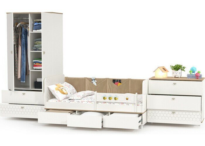 Набор детской мебели Эйп №6 (кровать + комод + шкаф) цвет белый/дуб белый Моби: сравнение цен, характеристики, фото, актуальное наличие и цены.