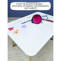 Главное преимущество стола — специальное влагостойкое покрытие, которое позволяет детям спокойно рисовать, лепить, перекусывать и экспериментировать, не боясь повредить поверхность. Мебель изготовлена из прочных материалов: ЛДСП, МДФ и массива дерева, что обеспечивает её долговечность и надежность.