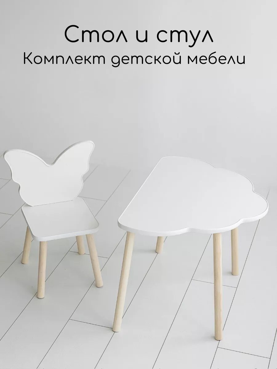 Купить Набор детской мебели «Стол Облако и стул Бабочка» от Мастерская Теремок, белый, классический стиль, ЛДСП с доставкой по всей России.