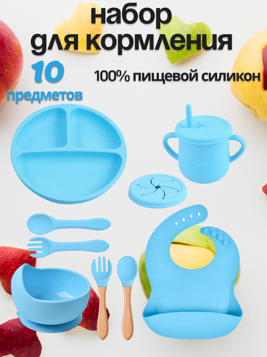 Набор детской посуды для кормления, 10 элементов, гипоаллергенный, силиконовый: сравнение цен, характеристики, фото, актуальное наличие и цены.