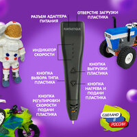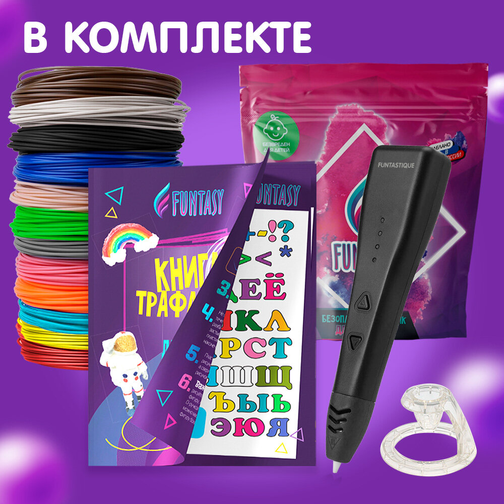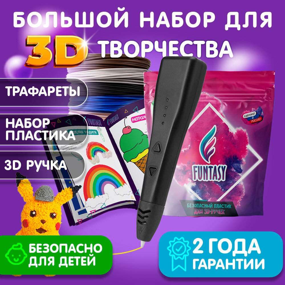 Купить Набор для 3Д творчества 3в1 FUNTASY 3D-ручка PICCOLO (Черный)+ABS-пластик 12 цветов+Книжка с трафаретами с доставкой по всей России.