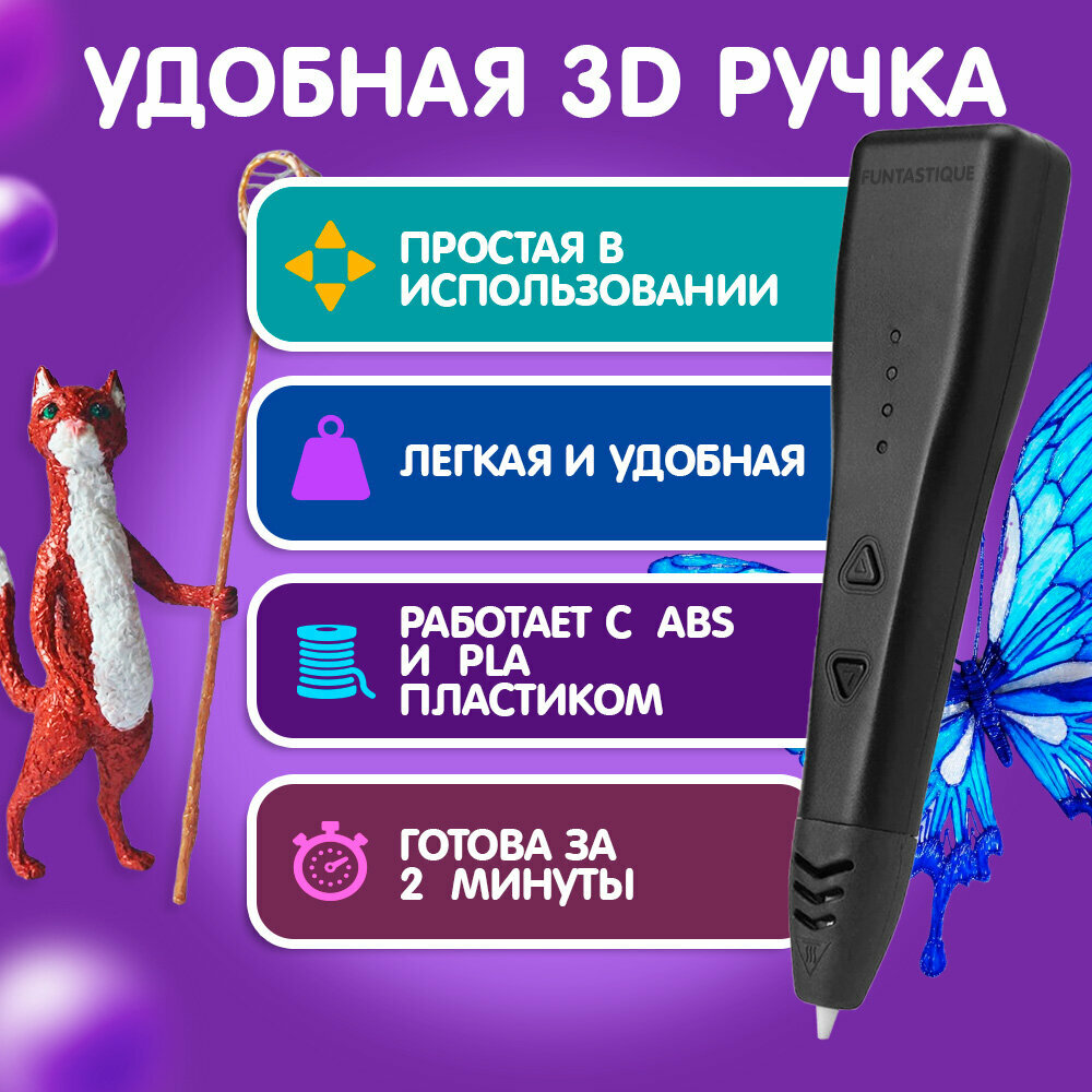 Купить Набор для 3Д творчества 3в1 FUNTASY 3D-ручка PICCOLO (Черный)+ABS-пластик 12 цветов+Книжка с трафаретами с доставкой по всей России.
