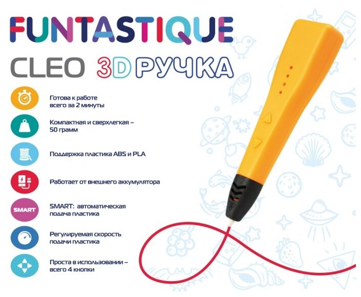 Купить Набор для 3Д творчества 4в1 FUNTASTIQUE 3D-ручка CLEO (Оранжевый) с подставкой+PLA-пластик 20 цветов+Книжка с трафаретами с доставкой по всей России.