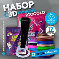 Купить Набор для 3Д творчества 4в1 FUNTASY 3D-ручка PICCOLO (Черная)+ PLA 17 цветов + Трафарет , картриджи , стержни , триде , подарок для ребенка с доставкой по всей России.
