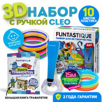 Купить Набор для 3Д творчества FUNTASTIQUE 3D-ручка CLEO с подставкой + PLA-пластик 10 цветов + светящийся PLA-пластик 3 цвета + Книжка с трафаретами (для мальчиков) с доставкой по всей России.