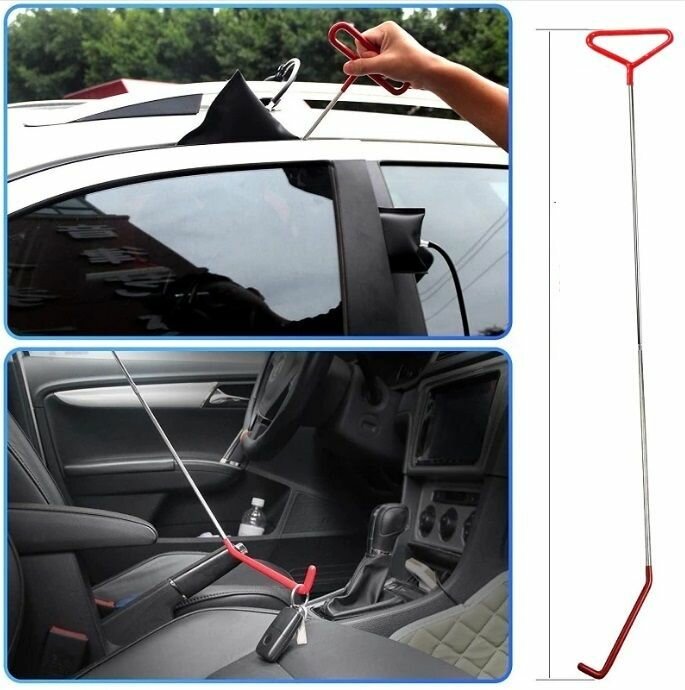 С помощью удлинителя с крючком на конце длиной 156см. Вы без труда достанете ключи оставленные в автомобиле или сможете нажать на кнопку блокировки двери.