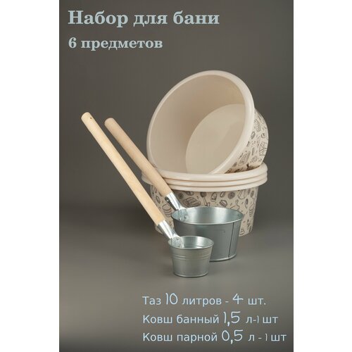 Купить Набор для бани 6 предметов: таз 10 литров Русская банька -4 шт+ ковш банный оцинкованный 1.5 литра + ковш оцинкованный 0.5 л парной. с доставкой по всей России. Набор для бани 6 предметов: таз 10 литров Русская банька -4 шт+ ковш банный оцинкованный 1.5 литра + ковш оцинкованный 0.5 л парной.: сравнение цен, характеристики, фото, актуальное наличие и цены.
