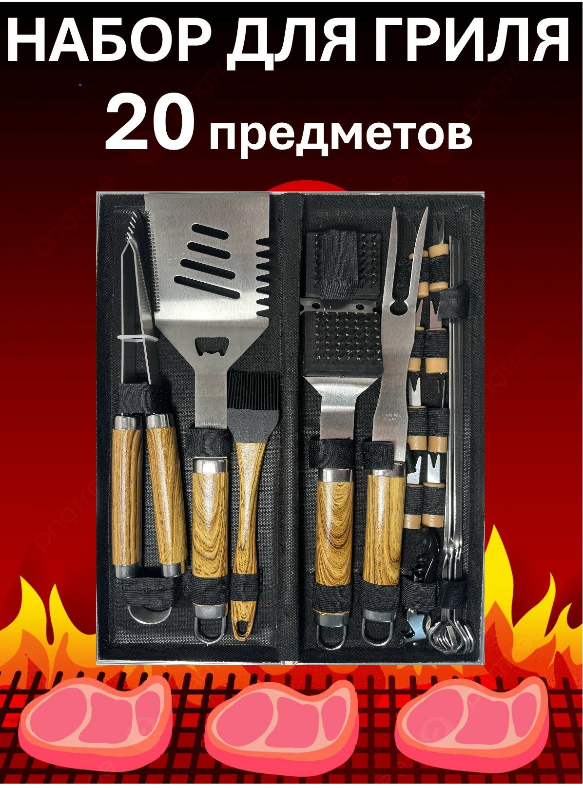 Набор для барбекю и гриля/ для шашлыка/ для дачи и пикника/ для мангала/ серебристый, 20 предметов: сравнение цен, характеристики, фото, актуальное наличие и цены.