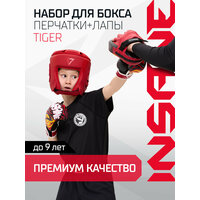 Купить Набор для бокса INSANE TIGER детский. Боксерские перчатки 6 OZ, лапы 23х17×4 см, цвет красный/черный с доставкой по всей России.