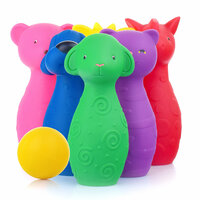 Боулинг детский С-987 Огонек Габариты упаковки-24 x 13 x 12 см. Высота игрушки, см. 22 Детский боулинг имеет кегли, сделанные в виде фигурок животных, а сбивать их предполагается шаром, более подходящим для детских рук. С набором можно играть дома и на улице, даже в бассейне, так как все предметы набора изготовлены из ПВХ. Игра в боулинг поможет развить координацию, умение попадать в цель, что пригодится во многих спортивных играх, а кроме того, поможет весело провести время!