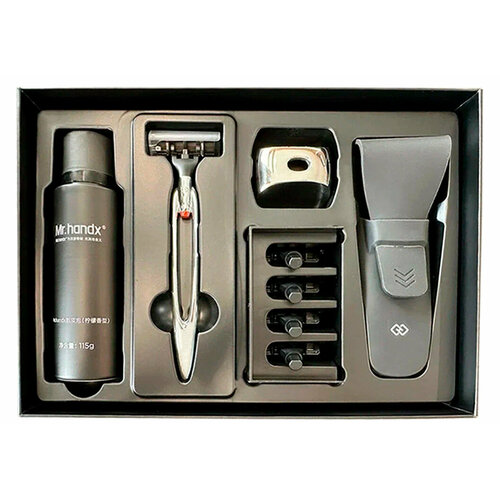 Xiaomi Huanxing Little Rocket Manual Shaver 9pcs Set (H200-9) - подарочный набор для бритья, который состоит из удобного и качественного станка со сменными кассетами, каждая из которых оборудована 5 лезвиями, чехла для бритвы, а также пены для бритья. Классический матовый нескользящий дизайн, обеспечивает удобный захват и демонстрирует искусный стиль бритвенного станка. Стальные лезвия эффективно справляются со своей задачей, а на их поверхности значительно снижается рост бактерий. Водорастворимая смазочная полоска станка насыщенна эссенцией масла ши, которое выделяет много смазывающей жидкости, при соприкосновении с водой, оказывая успокаивающий эффект на кожу лица и устраняя дискомфорт после бритья.
