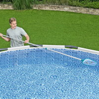 Комплект для очистки бассейнов Bestway AquaClean станет незаменимым помощником при уходе за бассейном. Для первого этапа уборки воспользуйтесь насадкой-сачком: он поможет убрать видимый мусор с поверхности воды. Для более глубокой очистки смените насадку на вакуумную и подключите ее с помощью шланга к фильтру-насосу в вашем бассейне: вода вернется в бассейн уже отфильтрованной, а мусор останется в специальной колбе.