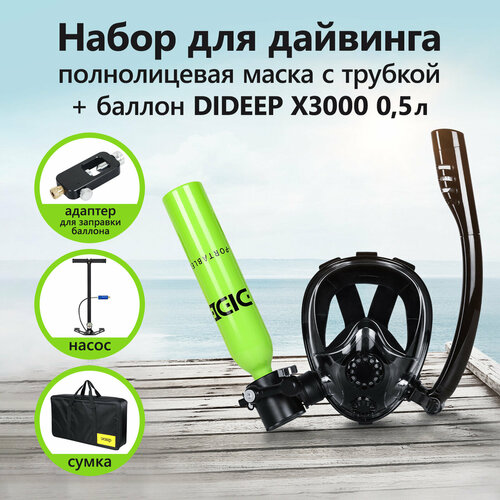 Набор для дайвинга DIDEEP 0.5LPlus, баллон 0,5л, маска с трубкой, 5 зеленый: сравнение цен, характеристики, фото, актуальное наличие и цены.