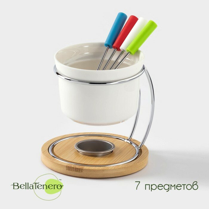 Купить Набор для фондю BellaTenero керамический, 5 предметов: чаша 250 мл, подставка, 4 шпажки, цвет белый с доставкой по всей России.