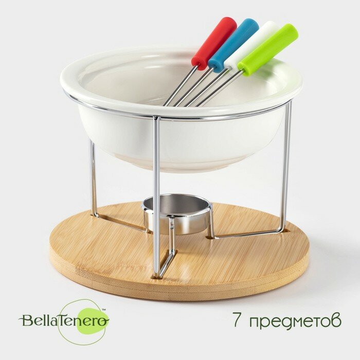 Купить Набор для фондю BellaTenero керамический, 5 предметов: чаша 350 мл, 4 шпажки, цвет белый с доставкой по всей России.