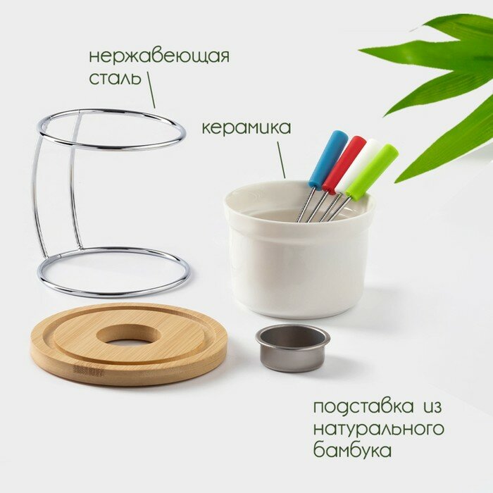 Купить Набор для фондю керамический BellaTenero, 5 предметов: чаша 250 мл, подставка, 4 шпажки, цвет белый с доставкой по всей России.
