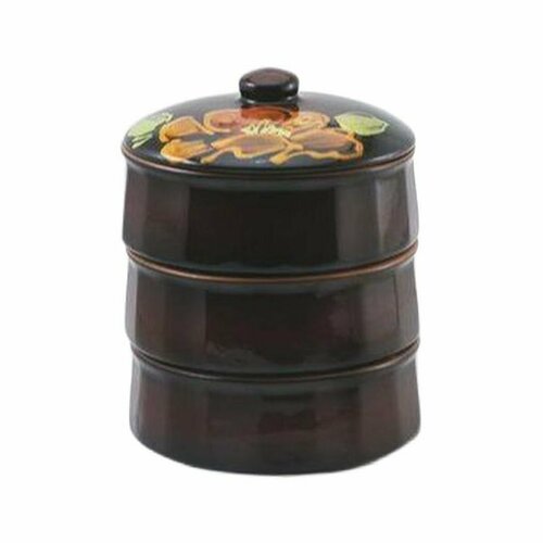 Изделия расписаны вручную, поэтому могут немного отличатся от изображения на сайте. В набор входит: 3 емкости по 0,3л и крышка.