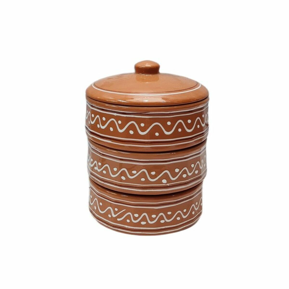 Набор состоит из трех форм и одной крышки. Отлично подходит для приготовления заливного. Формы ставятся одна на одну и в холодильнике не занимают много места. При желании, емкости можно использовать самостоятельно для запекания, а также для сервировки и хранения продуктов. Изделие изготовлено из жаропрочной керамики, его можно использовать в духовке и микроволновой печи.