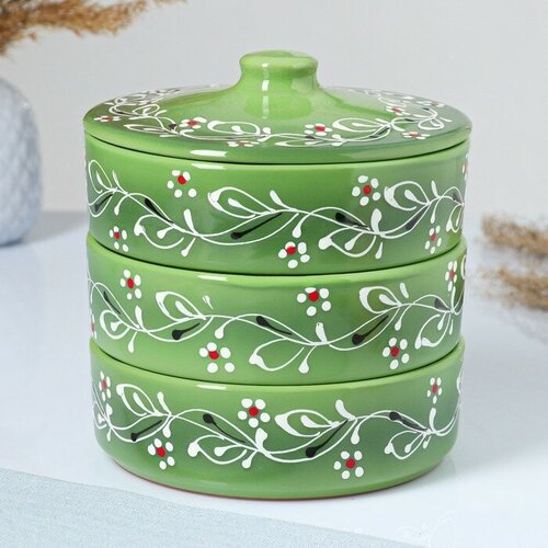 Набор из трёх керамических лотков для холодца с крышкой, с подглазурной росписью украсит стол и позволит сохранить еду свежей благодаря крышке. Лотки расположены друг над другом, что позволяет удобно разместить посуду в холодильнике, не занимая много места. Предназначен набор не только для разлива холодца, но и для запекания в духовке или печи, в нем блюдо получится очень вкусным и сочным, можно готовить без масла! Можно использовать в духовке, микроволновой печи. Беречь от резких перепадов температуры. Такому подарку будет рада любая хозяйка!