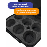 6 больших шаров для бросков, 1 маленький шар-мишень «кошонет», мерная веревка с колышком для очерчивания круга, футляр для хранения и переноски, брошюра с правилами игры