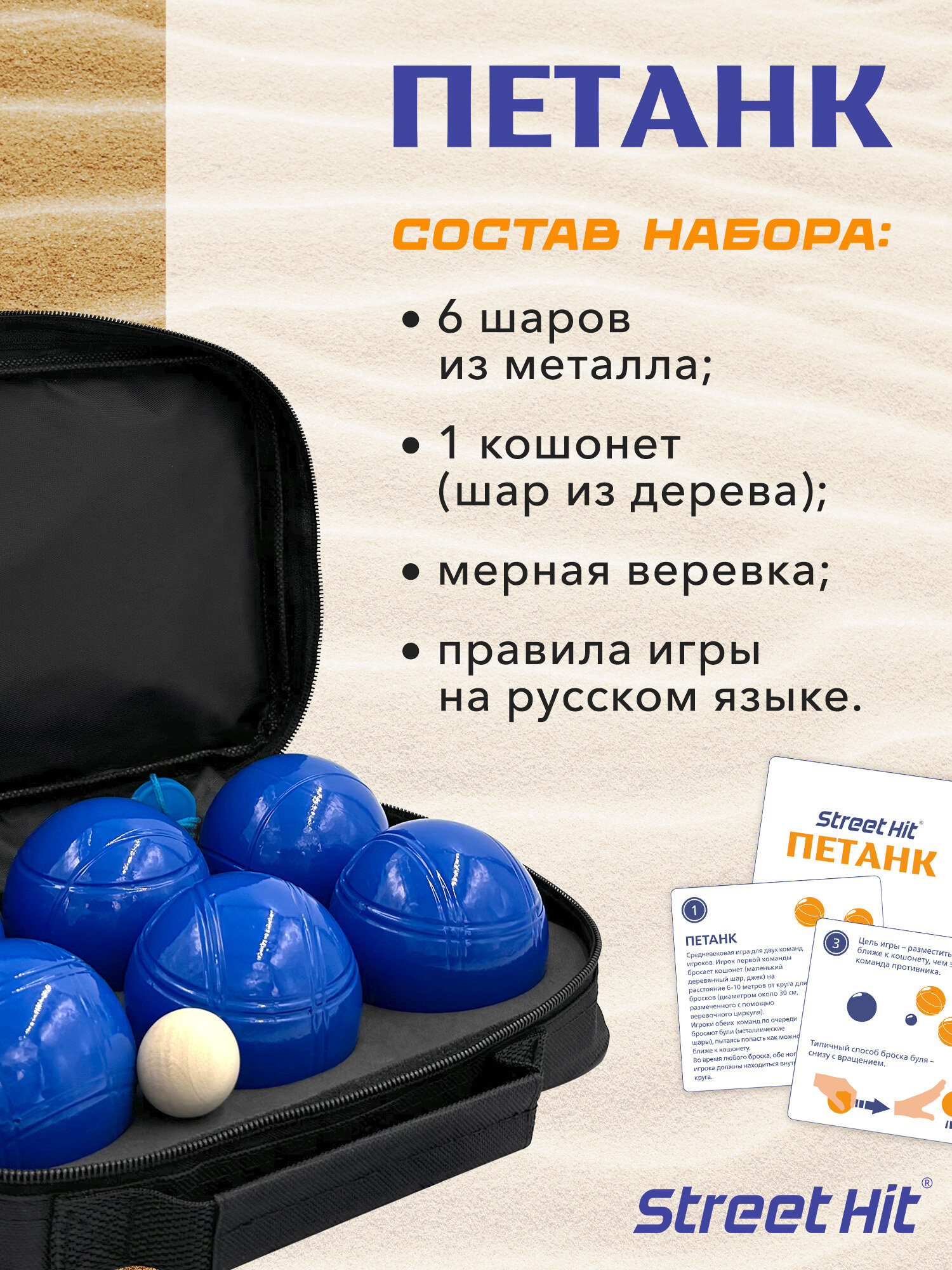 Купить Набор для игры Street Hit Петанк (Бочче), 6 шаров из металла, синий с доставкой по всей России. Набор для игры Street Hit Петанк (Бочче), 6 шаров из металла, синий: сравнение цен, характеристики, фото, актуальное наличие и цены.