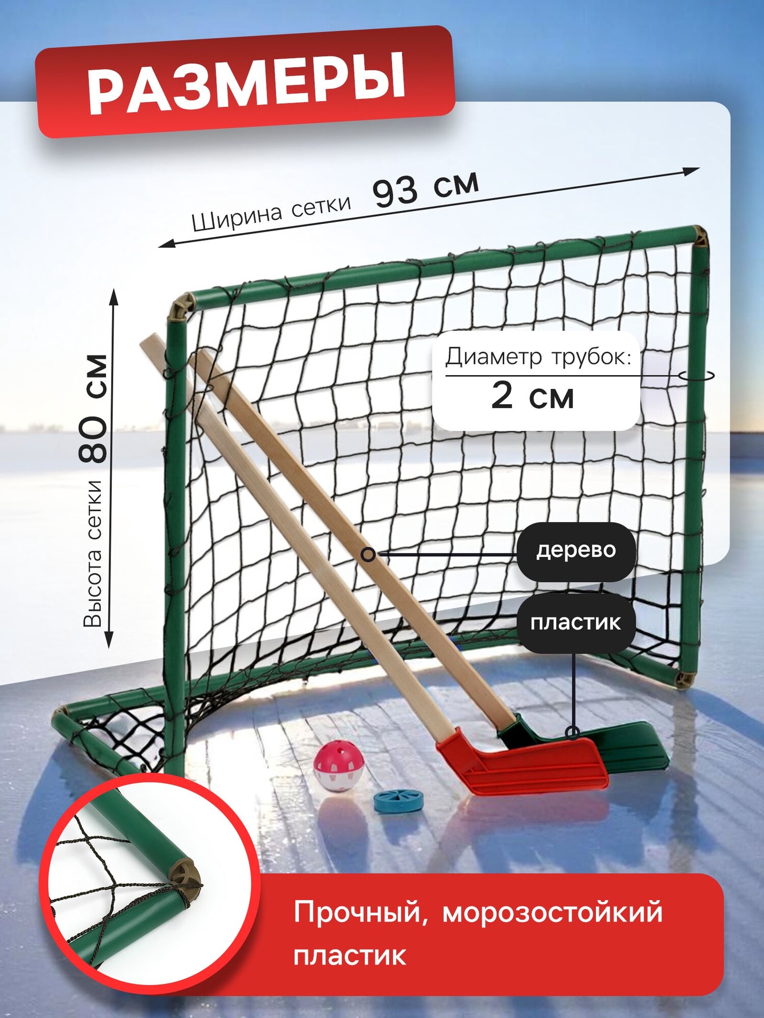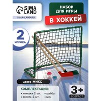 Купить Набор для игры в хоккей (клюшка 2 шт, ворота 2 шт, шайба, мяч), цвет микс с доставкой по всей России.