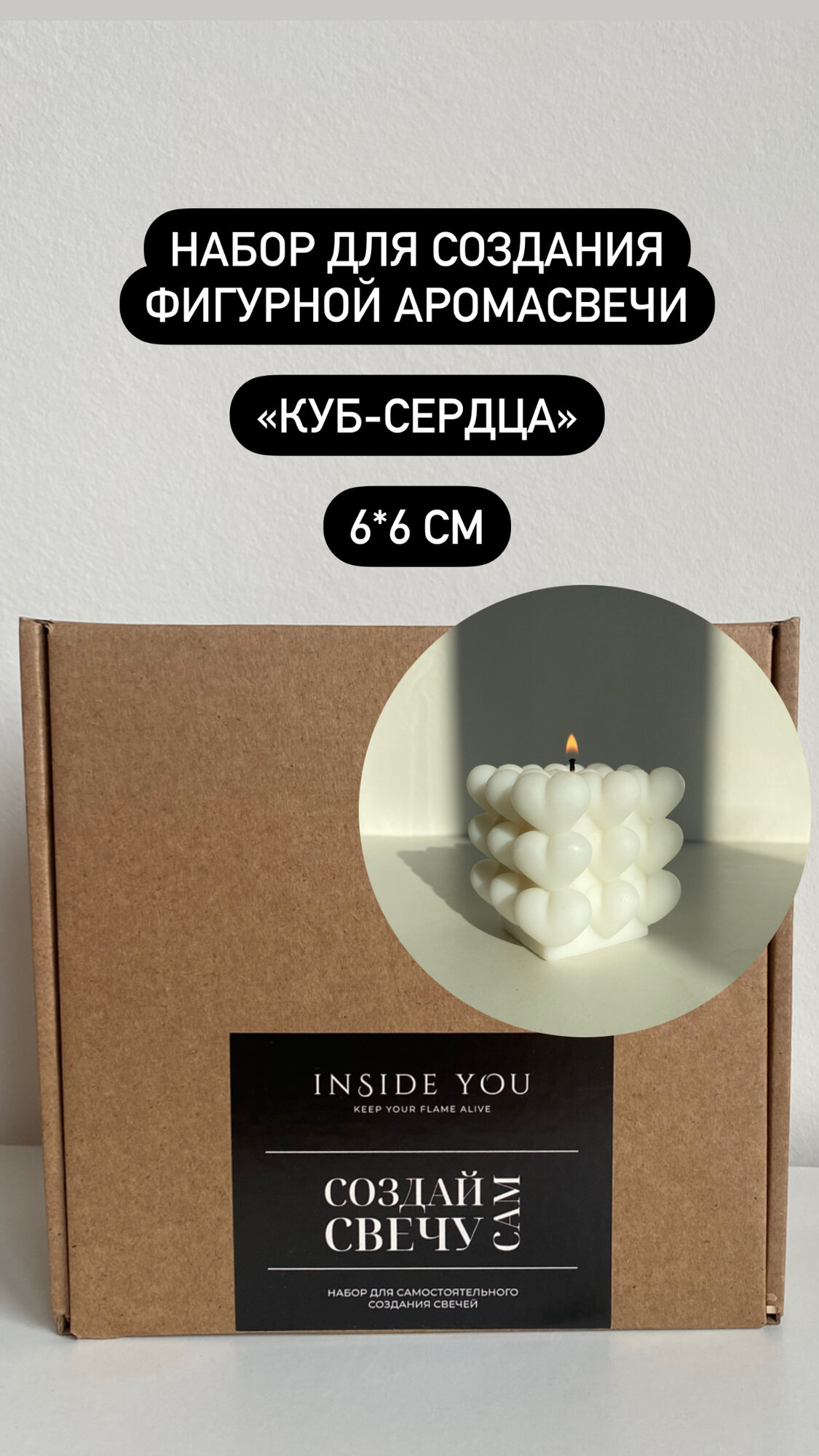 Набор для изготовления ароматической свечи INSIDE YOU Куб — сердца “ Розовое шампанское ”, 6 см: сравнение цен, характеристики, фото, актуальное наличие и цены.