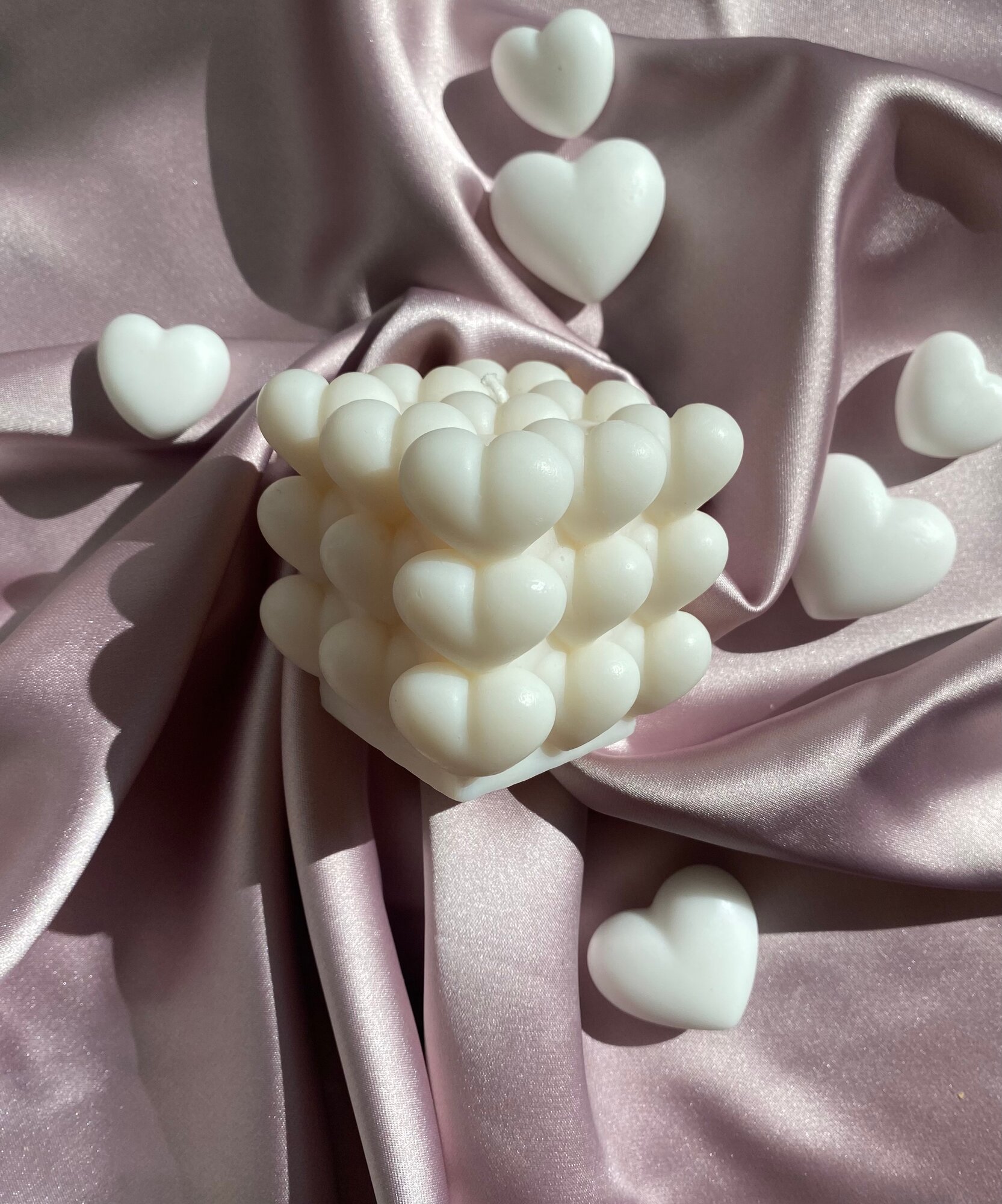 Купить Набор для изготовления ароматической свечи INSIDE YOU Куб — сердца “ Розовое шампанское ”, 6 см с доставкой по всей России.