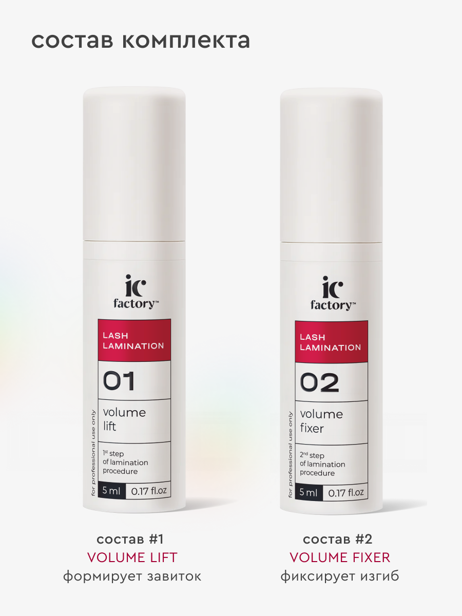 Состав #1 для ламинирования ресниц VOLUME LIFT IC FACTORY, 5 мл — 1 шт.; Инструкция — 1 шт.